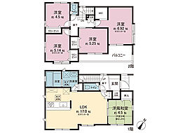 | 間取り | 5LDK 間取り内訳:リビングダイニングキッチン 17帖(1階)・和室 4.5畳(1階)・洋室 6.9帖(2階)・洋室 5.2帖(2階)・洋室 5.1帖(2階)・洋室 4.5帖(2階) |