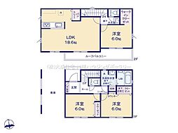 | 間取り | 4LDK 間取り内訳:リビングダイニングキッチン 18帖(1階)・洋室 3帖(1階)・洋室 6.2帖(2階)・洋室 5.5帖(2階)・洋室 4.5帖(2階) |