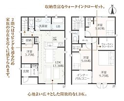 間取り内訳:リビングダイニングキッチン 17帖(1階)・洋室 4.5帖(1階)・洋室 8帖(2階)・洋室 6帖(2階)・洋室 5.2帖(2階)