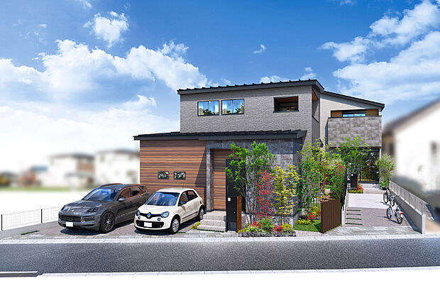 • 【落ち着いた色合いのデザイン】落ち着いたグレイッシュの色合いで統一したデザイン。木の風合いを感じる格子と木目調の外壁がアクセントとなり美しい住まいを創出します。