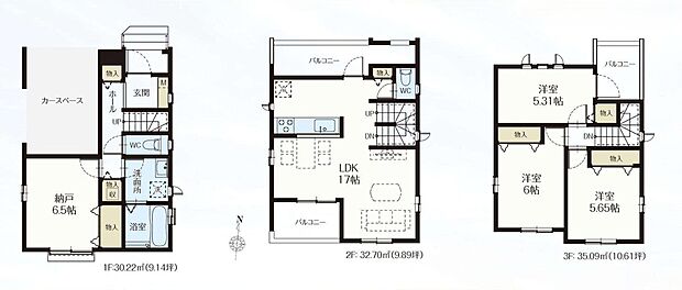 間取り 3LDKS 建物階 木造サイディング貼アスファルトシングル葺3階建て