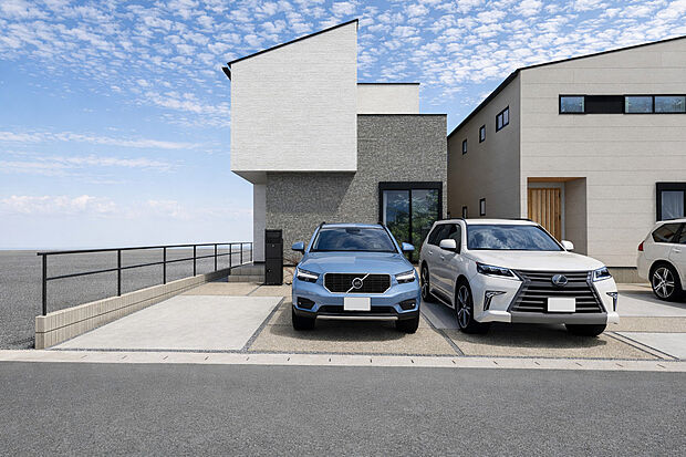 • 【A号棟】現地外観パース 並列駐車3台可!