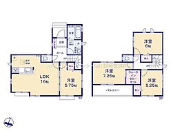 | 間取り | 4SLDK 間取り内訳:リビングダイニングキッチン 16.2帖(1階)・和室 4.5畳(1階)・洋室 7.5帖(2階)・洋室 6帖(2階)・洋室 5帖(2階) |