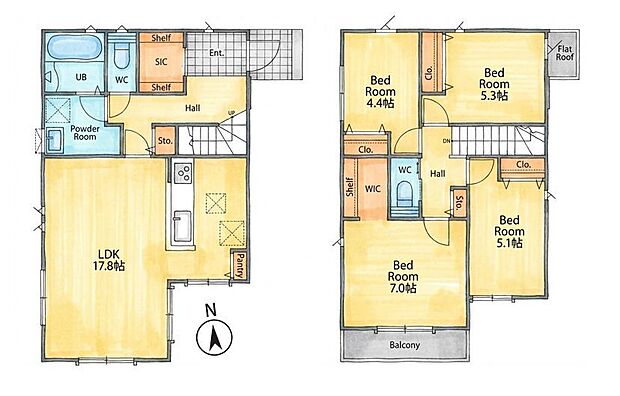| 間取り | 4LDK 間取り内訳:リビングダイニングキッチン 17.8帖(1階) |
