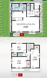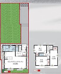 | 間取り | 2SLDK 間取り内訳:リビングダイニングキッチン 18帖(1階)・洋室 6.5帖(2階)・洋室 6.2帖(2階)・収納 5帖(2階) |