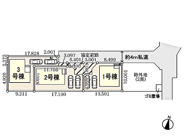 • 北 (私道 幅員 4.00m 接面 -)