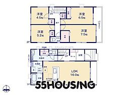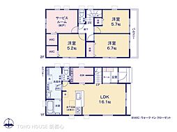 | 間取り | 3SLDK 間取り内訳:リビングダイニングキッチン 16.1帖(1階)・洋室 6.7帖(2階)・洋室 5.8帖(2階)・洋室 5.7帖(2階)・洋室 5.2帖(2階) |