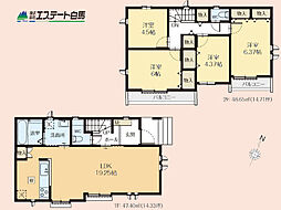 | 間取り | 4LDK 間取り内訳:リビングダイニングキッチン 19.2帖(1階)・洋室 6.3帖(2階)・洋室 6帖(2階)・洋室 4.5帖(2階)・洋室 4.3帖(2階) |