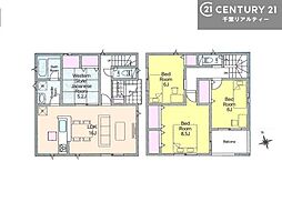 | 間取り | 3LDK(床下収納・ウォークインクローゼット) 間取り内訳:リビングダイニングキッチン 17.6帖(1階)・洋室 7帖(2階)・洋室 6.5帖(2階)・洋室 6帖(2階) |