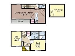| 間取り | 2SLDK 間取り内訳:収納 5.2帖(1階)・リビングダイニングキッチン 17.6帖(2階)・洋室 7帖(3階)・洋室 6帖(3階) |