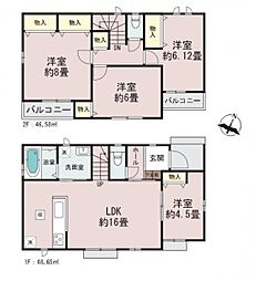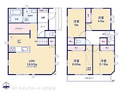 | 間取り | 2SLDK 間取り内訳:リビングダイニングキッチン 18.1帖(1階)・洋室 6帖(2階)・洋室 5.6帖(2階)・収納 5.3帖(2階) |