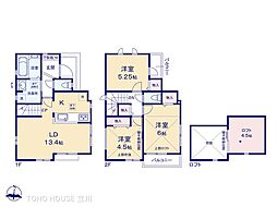 間取り内訳:リビングダイニングキッチン 13.4帖・洋室 6帖・洋室 5.2帖・洋室 4.5帖