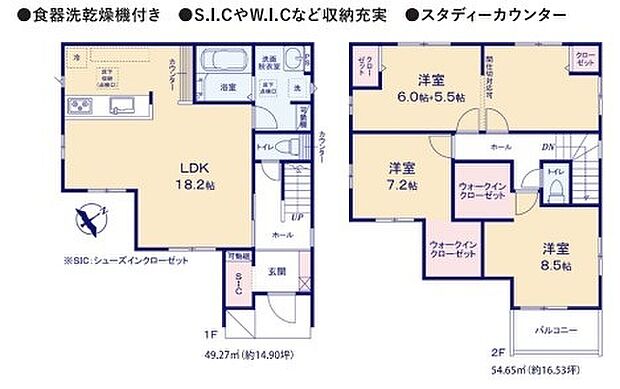 | 間取り | 3LDK(洋室11.5帖を6帖+5.5帖に間仕切り対応可能) 間取り内訳:リビングダイニングキッチン 18.2帖・洋室 11.5帖・洋室 8.5帖・洋室 7.2帖 |