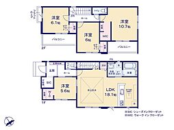 | 間取り | 4LDK 間取り内訳:リビングダイニングキッチン 18.1帖(1階)・洋室 5.6帖(1階)・洋室 6.1帖(2階)・洋室 6帖(2階)・洋室 10.7帖(2階) |