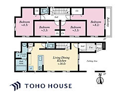 • 「建築条件付き土地」の「建物プラン例」は、土地購入者の設計プランの一例であり、プランの採用可否は任意です。