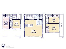 | 間取り | 3SLDK 間取り内訳:洋室 5.2帖(1階)・収納 5.6帖(1階)・リビングダイニングキッチン 19.1帖(2階)・洋室 7.5帖(3階)・洋室 5帖(3階) |