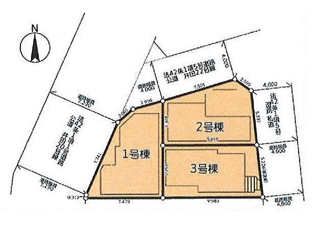 | 土地面積 | 50.02m2~50.03m2<私道負担面積39.43m2 私道負担割合1/3> | ||