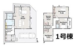 | 間取り | 4LDK 間取り内訳:リビングダイニングキッチン 17.5帖(1階)・和室 5.2畳(1階)・洋室 6帖(2階)・洋室 6.2帖(2階)・洋室 7.5帖(2階) |