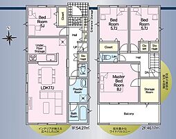 | 間取り | 5LDK 間取り内訳:リビングダイニングキッチン 16帖(1階)・和室 6畳(1階)・洋室 6.5帖(2階)・洋室 6帖(2階)x2・洋室 4.5帖(2階) |