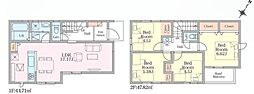 | 間取り | 3LDK 間取り内訳:リビングダイニングキッチン 16.2帖(1階)・洋室 7.2帖(2階)・洋室 7.2帖(2階)・洋室 5.2帖(2階) |