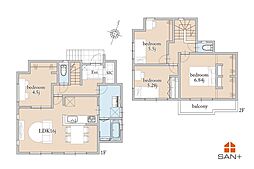 | 間取り | 3LDK 間取り内訳:リビングダイニングキッチン 17帖(1階)・洋室 10.8帖(2階)・洋室 6帖(2階)・洋室 5.4帖(2階) |
