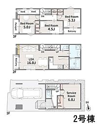| 間取り | 4LDK 間取り内訳:リビングダイニングキッチン 16帖(1階)・和室 3畳(1階)・洋室 7.2帖(2階)・洋室 6帖(2階)・洋室 5帖(2階) |
