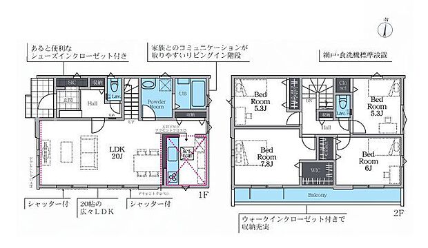| 間取り | 4LDK 間取り内訳:リビングダイニングキッチン 20帖(1階) |