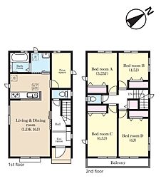 間取り内訳:リビングダイニングキッチン 19.4帖(1階)・洋室 7.9帖(2階)・洋室 5.2帖(2階)・洋室 5.2帖(2階)
