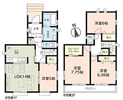 | 間取り | 4LDK 間取り内訳:洋室 6帖(2階)・リビングダイニングキッチン 14帖(1階)・洋室 5帖(1階)・洋室 7.7帖(2階)・洋室 6帖(2階) |