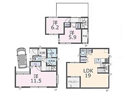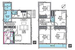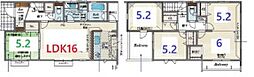 | 間取り | 4LDK 間取り内訳:リビングダイニングキッチン 16帖(1階)・洋室 5.2帖(1階)・洋室 7帖(2階)・洋室 6.1帖(2階)・洋室 5.2帖(2階) |