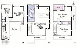 間取り 3LDK+S 建物階 木造、地上3階建て