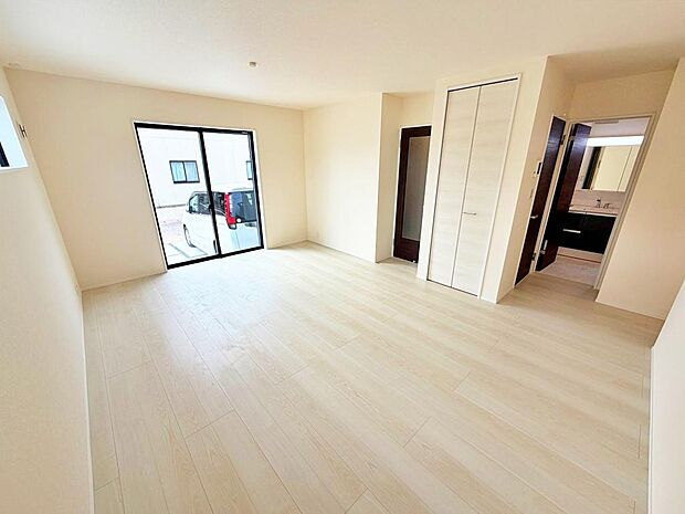 家族が集まるLDKは少しでも広く快適に♪家族の会話を楽しみながら料理ができる対面キッチン♪三面鏡にハンドシャワー付き◎使いやすい洗面台♪節水型トイレで家計に優しい♪2面採光で日当たり良好♪