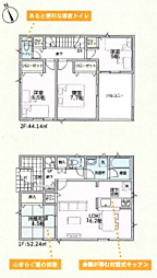 | 間取り | 4LDK(パントリー、クローク) 間取り内訳:リビングダイニングキッチン 15帖(1階)・和室 4.5畳(1階)・洋室 9帖(2階)・洋室 6帖(2階)・洋室 5.2帖(2階) |