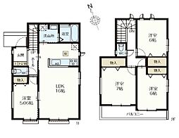 間取り内訳:リビングダイニングキッチン 16帖(1階)・洋室 5帖(1階)・洋室 7帖(2階)・洋室 6帖(2階)