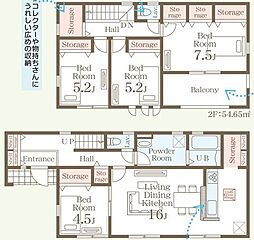 間取り内訳:リビングダイニングキッチン 16帖(1階)・洋室 4.5帖(1階)・洋室 7.5帖(2階)・洋室 5.2帖(2階)x2