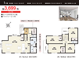 | 間取り | 4LDK 間取り内訳:リビングダイニングキッチン 17.6帖(1階)・洋室 4.5帖(1階)・洋室 5.2帖(2階)・洋室 6帖(2階)・洋室 7帖(2階) |