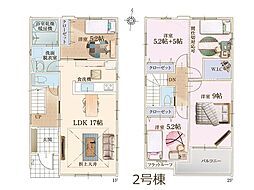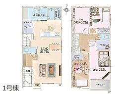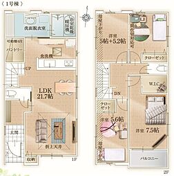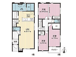 間取り内訳:リビングダイニングキッチン 21.7帖(1階)・洋室 10.2帖(2階)・洋室 7.5帖(2階)・洋室 5.6帖(2階)