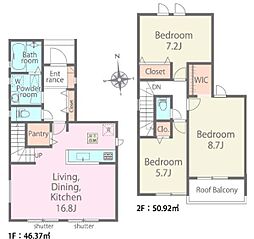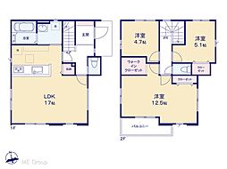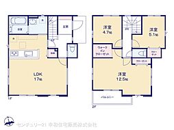 | 間取り | 3LDK(4LDK可) 間取り内訳:リビングダイニングキッチン 17帖(1階)・洋室 12.5帖(2階)・洋室 5.1帖(2階)・洋室 4.7帖(2階) |