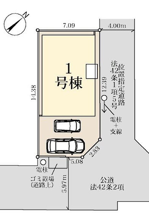 • 北東 (私道 幅員 4.00m 接面 12.30m)