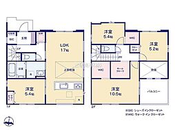 | 間取り | 4LDK 間取り内訳:リビングダイニングキッチン 17帖・洋室 5.4帖・洋室 10.5帖・洋室 5.4帖・洋室 5.2帖 |