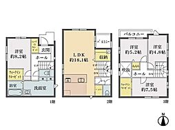 | 間取り | 3LDK(2LDK対応可※有償工事)+ステージリビング+書斎+ウォークインクロゼットコーナー+パントリー+リネン庫 |