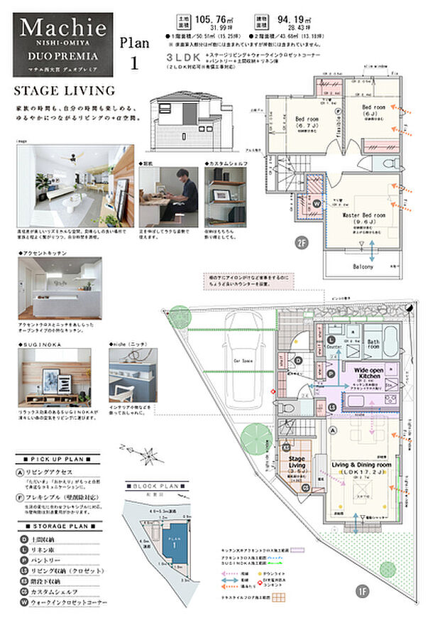 3LDK(2LDK対応可※有償工事)+ステージリビング+ウォークインクロゼットコーナー+パントリー+土間収納+リネン庫 |