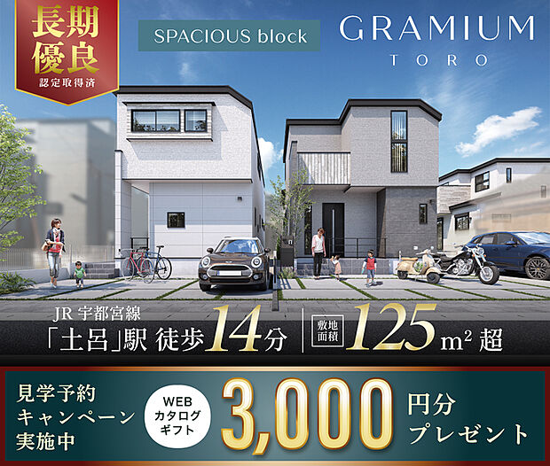 ◆JR宇都宮線「土呂」駅徒歩14分 ◆敷地面積125~168m2超 ◆長期優良住宅 認定取得済 ◆「第一種低層住居専用地域」です。 建築可能な建物の高さや種類、建物間の距離が厳しく制限されており、陽当たりと通風の確保しやすい地域です。 ◆ガス衣類乾燥機「乾太くん」標準設置 ◆リビング・ダイニングに床暖房を標準設置 ◆ハイブリッド給湯器「エコワン」標準採用 ◆1階掃き出し窓に電動シャッター標準設置