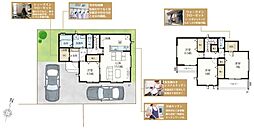 | 間取り | 3LDK+フラットテキスタイル+ペアウォークインクロゼットコーナー+ウォークインクロゼットコーナー+ペアクロゼットコーナー+階段下パントリー+土間収納+階段下リネン庫+テラスバルコニー | 建物階 | 木造2階建(在来工法) |