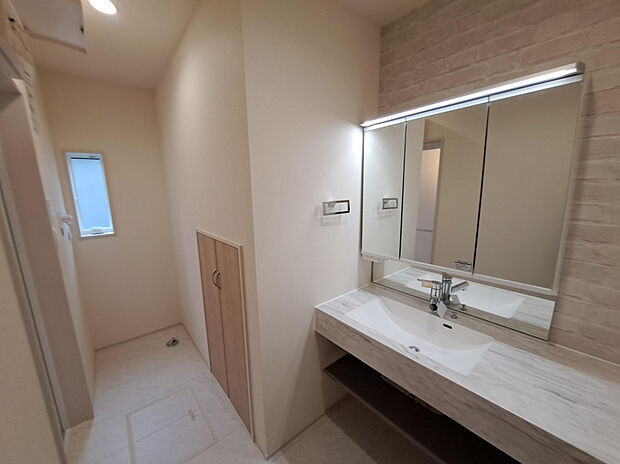 • 姿見付きの下駄箱で、お家を出る前に今日のコーディネートの最終チェックをすることができます♪