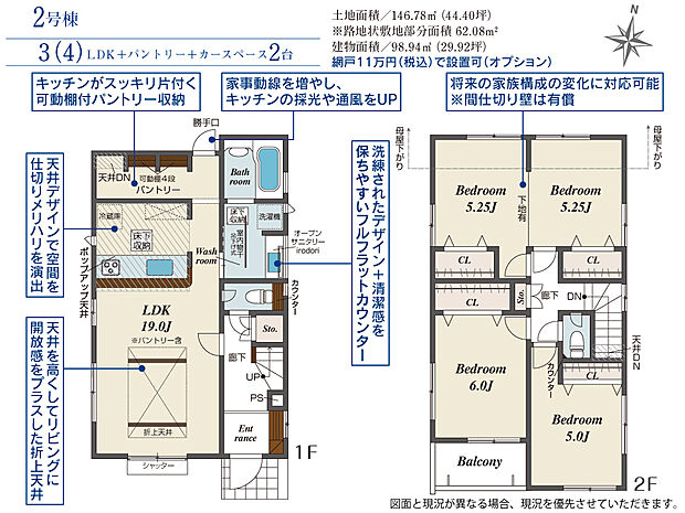 98.94m2(約29.92坪)~105.37m2(約31.87坪) |