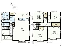 | 間取り | 4LDK(LDK 18.0畳 洋 4.0畳 洋 4.0畳 洋 6.0畳 洋 6.0畳) 間取り内訳:リビングダイニングキッチン 18帖(1階)・洋室 4帖(2階)・洋室 4帖(2階)・洋室 6帖(2階)・洋室 6帖(2階) |