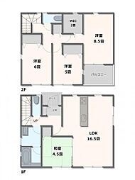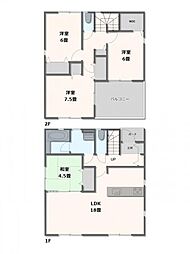 | 間取り | 4LDK 間取り内訳:リビングダイニングキッチン 18帖(1階)・和室 4.5畳(1階)・洋室 7.5帖(2階)・洋室 6帖(2階)x2 |
