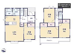 | 間取り | 4LDK 間取り内訳:リビングダイニングキッチン 21.9帖(1階)・洋室 5.2帖(2階)・洋室 5.2帖(2階)・洋室 4.9帖(2階)・洋室 7.9帖(2階) |