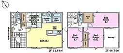 間取り内訳:リビングダイニングキッチン 15帖(1階)・洋室 5.2帖(1階)・洋室 6帖(2階)・洋室 6.6帖(2階)・洋室 8.5帖(2階)